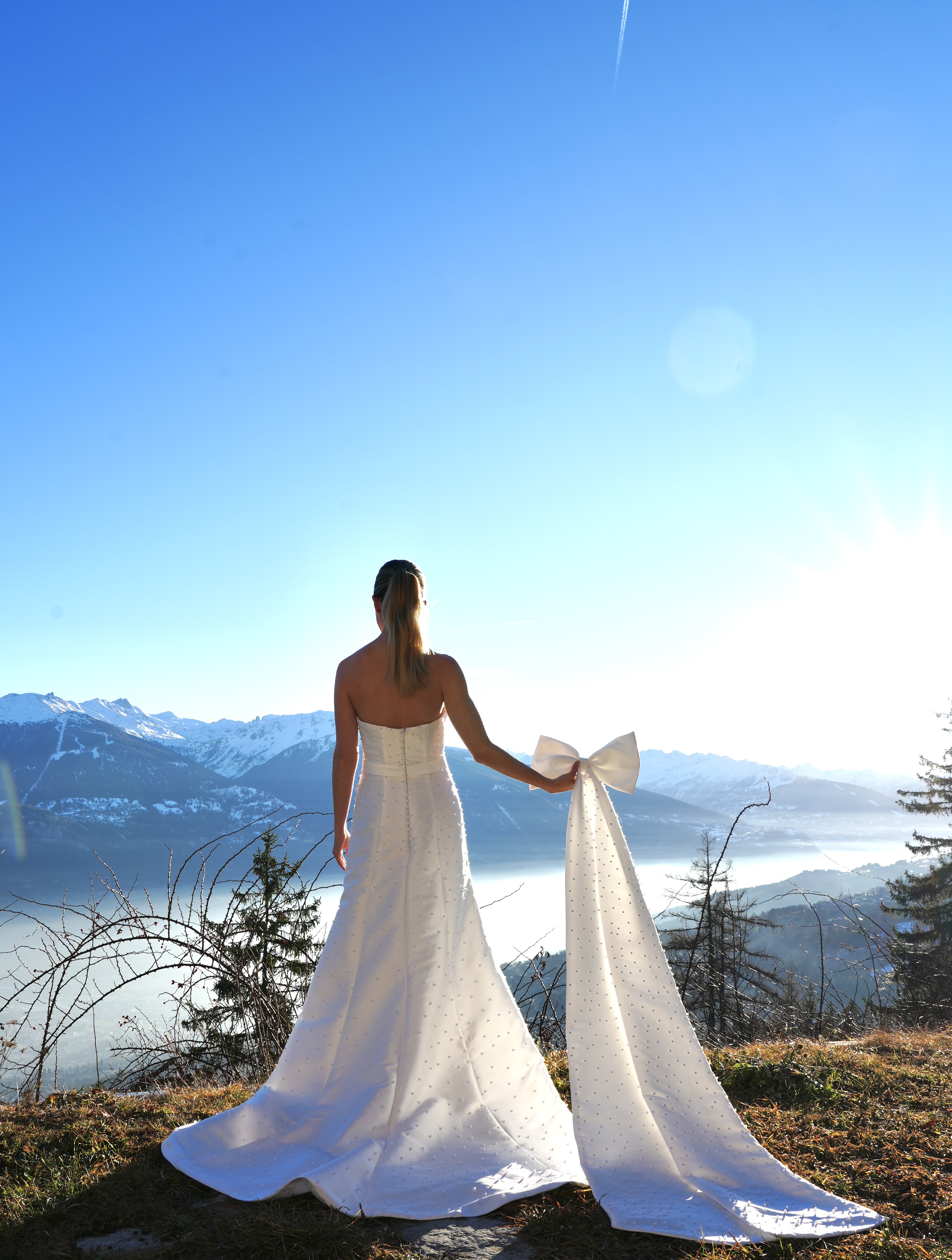 Featuring a detachable bow at the back, this gown offers versatility for your special day—wear it with the dramatic bow for the ceremony and remove it for a sleek reception look.